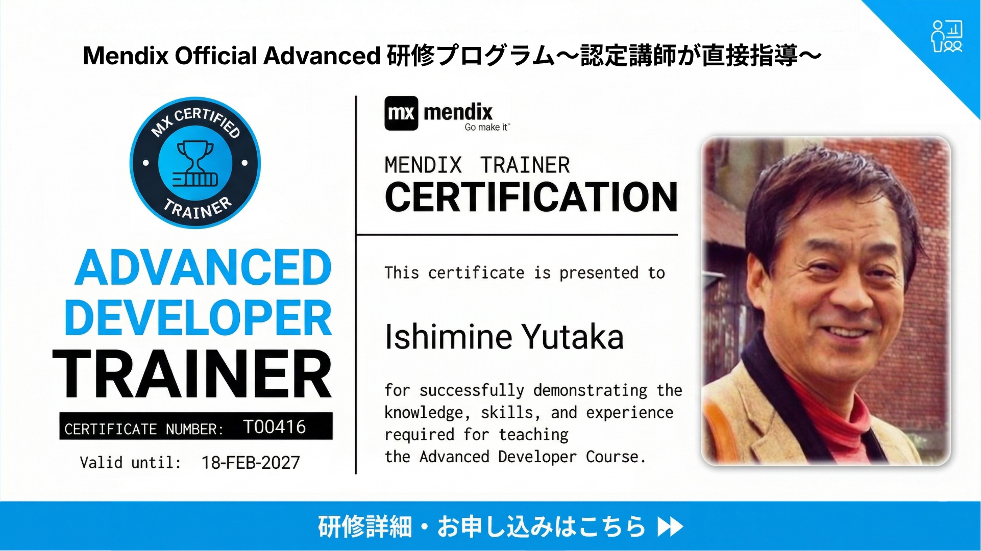 MendixAcademyと連携した、独自の教育カリキュラムを有し、協力会社様を含め、中級技術者、上級技術者が40名以上が安定的に稼働しております。国内のMendix技術者養成は、社内外の垣根無く引き続き努めてまいります。